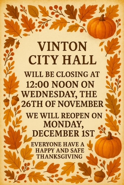 We now have a information case mounted outside the front doors at Vinton City Hall. This case makes it easier for you to keep up with upcoming events, flyers and City Council Agendas.